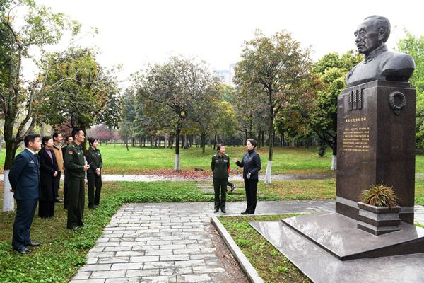 在调研环节,来访单位参观了“红土”思政文化长廊、“五老四少”雕塑群、竢实扬华文化墙以及智慧教室、数字化教学平台、陆地交通地质灾害防治技术国家工程研究中心、铁路机车博物馆等思政育人场地。
