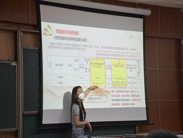 最后,由喻夏老师进行了2023年毕业生党员党组织关系转接的培训会,就党组织关系转接的基本原则向全体毕业生进行了详细的介绍与说明。