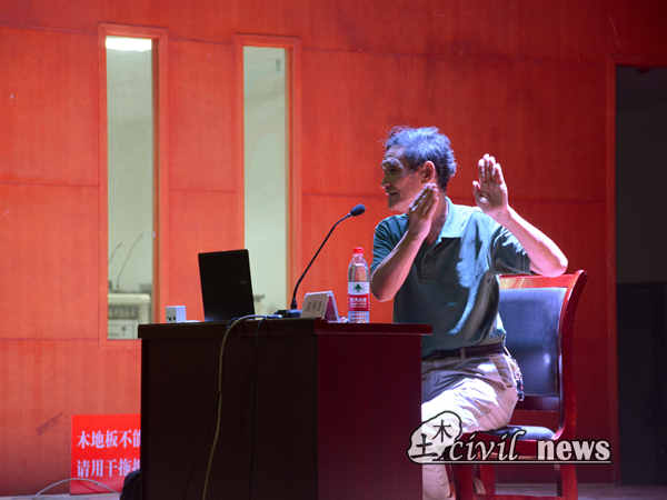 紧接着,梁锦堂老师便为同学们讲起了我校优良校风的形成。“精勤求学,敦笃励志,果毅力行,忠恕任事”,这个校训为四所交大共有,因为四所交大曾合并一校,成为交通大学。我校自建校以来就恪守严谨治学的原则,形成了老师同学相互学习,共同进步的优良学风。“我校要求到底有多严呢?”梁老师为大家举了:罗忠忱、顾宜孙、伍镜湖、黄寿恒、李斐英五位教授,他们因对学生严格要求而被称为唐院五老,为此还流传下来一句话:天不怕地不怕,就怕黄教授说中国话。因为黄教授只有考试的时候才会说汉语。讲至此处,掌声雷动。