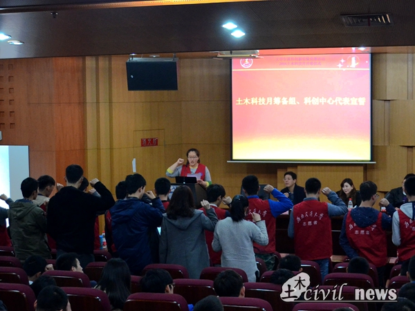 2016年土木科技月筹备组组织委员会和工作人员进行了宣誓,誓词铿锵有力,喊出了交大土木科创中心的责任与担当。誓词的余音还未完全散去,带着这份激情,开始进入本次大会的第二阶段,对性吧