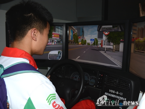 从四教离开,来到位于五教的交通运输实验中心。邓灼志老师首先为大家介绍了一个包括六个站台、车轨、隧道和信号灯的模拟车站。通过信号指挥,仿真的小列车就徐徐开动了。前进、变轨、停车,一系列动作井井有条地完成了。在驾驶训练模拟平台上,同学们争先上去驾驶公交车,看着屏幕上面虚拟化出来的道路场景,同学们十分激动。随后,大家来到了编组站作业组仿真实验室和高速铁路综合调度指挥仿真实验室。