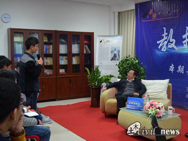 在一片掌声中,刘教授带着微笑入场。一切准备就绪后,主持人张蓝月宣布活动正式开始。主持人首先谈到,目前我国以“四纵四横”为主骨架的高速铁路网已全部开工建设。对于高速铁路来说,无砟轨道是非常重要的组成部分,而刘教授正是这个领域的专业人才,同时也在其他多个方面颇有建树。于是,主持人请刘教授谈谈轨道工程这一领域在未来的发展趋势和可能会面临的机遇和挑战。刘教授说,我们国家在轨道工程方面还有很大的发展空间,在技术研究上还有很长的路要走。所以,轨道工程并不会随着我国近几年经济增速放缓而变为夕阳产业。