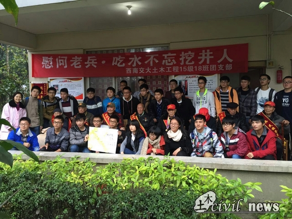 2015年11月14号,在一个阴凉并伴有小雨的下午,18班的同学们怀着激动的心情来到了成都市晚霞敬老院,为抗战老兵们送去自己的温暖。