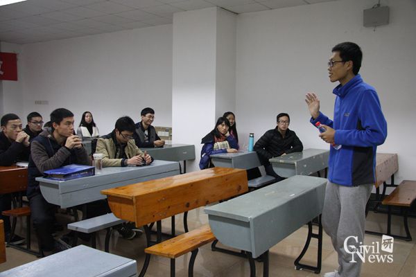 首先,岩土一班班长李永奎同学宣布活动正式开始。他为大家介绍了大学生、硕士生、博士生的定位。本科生的主要目的就是掌握现有知识,打牢基础;硕士研究生就是在掌握基础知识的前提下,发现未知真理;而博士研究生在某一专业领域要达到一定的研究深度。