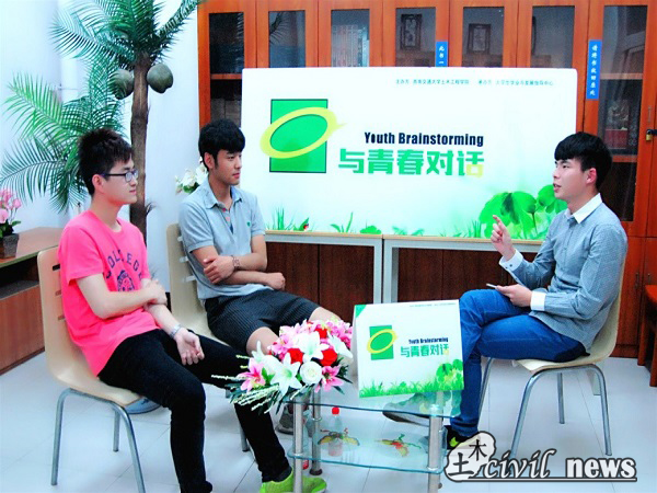 不知是不是因为同是文艺骨干的原因,两位帅气的青年笑着入场时,旁人就能感受到他们身上洋溢的艺术气息。第五期“与青春对话”就这样轻松欢快的氛围中拉开帷幕。“并不是你唱歌唱的特别动听或是跳舞跳的特别棒才叫文艺青年,而是只要你真心的热爱文艺这件事情,并且它也能给予你支撑内心的力量和无穷的乐趣,那你就是真正的文艺青年。” 在主持人询问了两人对文艺青年的定义,他们给出了共同的理解。