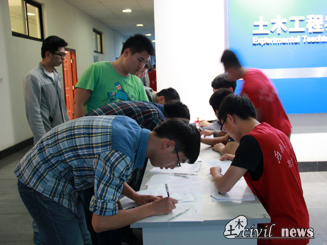 第一天紧张的报名工作结束后,大概有200个小组前来报名,在场的一位负责人根据以往组织报名工作的经验和第一天同学们报名的积极性推断说:“今年参加比赛的小组预计会在400个左右。”前来报名的有大一的“小鲜肉”,但也有许多经验丰富的“老油条”。大三的一位同学说:“这是我第三次参加了,这次参加的是桥梁称重。”当被问及是否有信心得奖时,他半开玩笑地说:“这个主要还是看运气吧。”