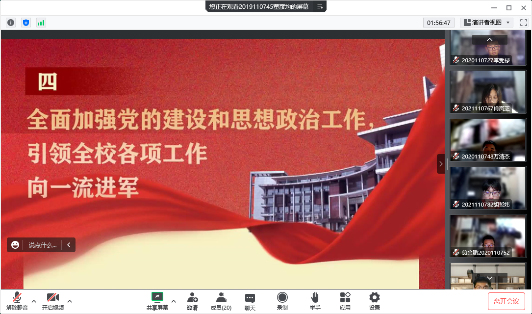 会议由支部书记董彦均同志主持,本次会议成员有组织委员沐海星、宣传委员李彦彬,以及土木学生第八党支部全体党员、预备党员、部分积极分子,共计40名同志。