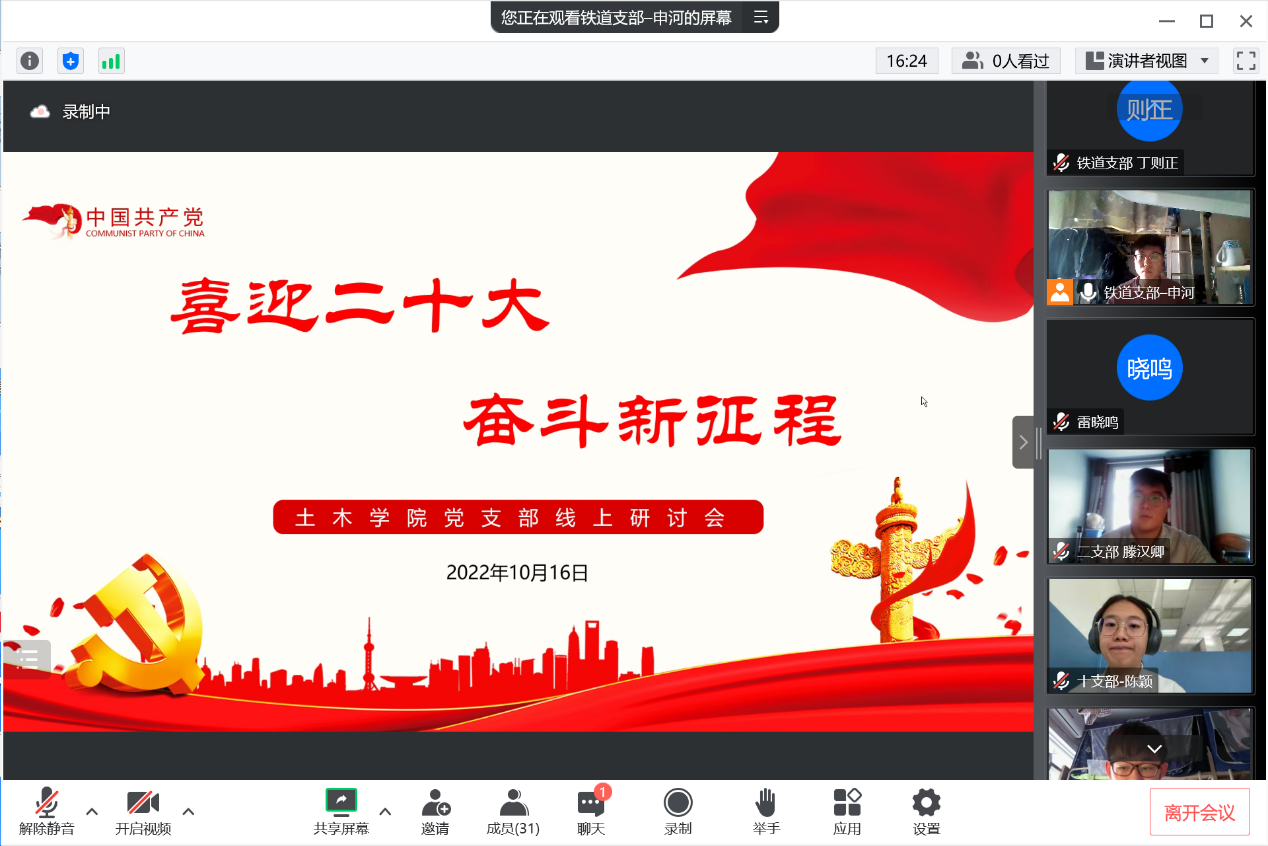 为深入学习贯彻习近平新时代中国特色社会主义思想,第一时间学习领悟中国共产党第二十次全国代表大会精神,10月16日下午4时,由土木学生铁道党支部主持,性吧