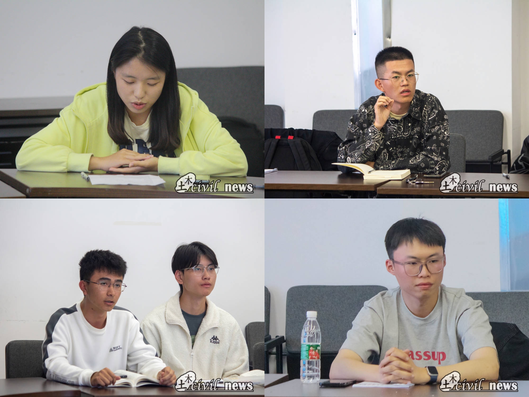 学生会主席团成员陶祚诏则分享了个人大学期间的成长经历,指出应善于端正学习态度、树立短期目标并为之不懈努力。ASCEISG主任吴津庭鼓励同学们在不断提高个人能力的过程中积极投入社会实践,在创新实践中实现个人价值。性吧主任叶晨希通过分享文学阅读带来的现实思考鼓励同学们提升个人审美素养,在专业学习过程中争做“德智体美劳”综合发展的新时代土木青年。