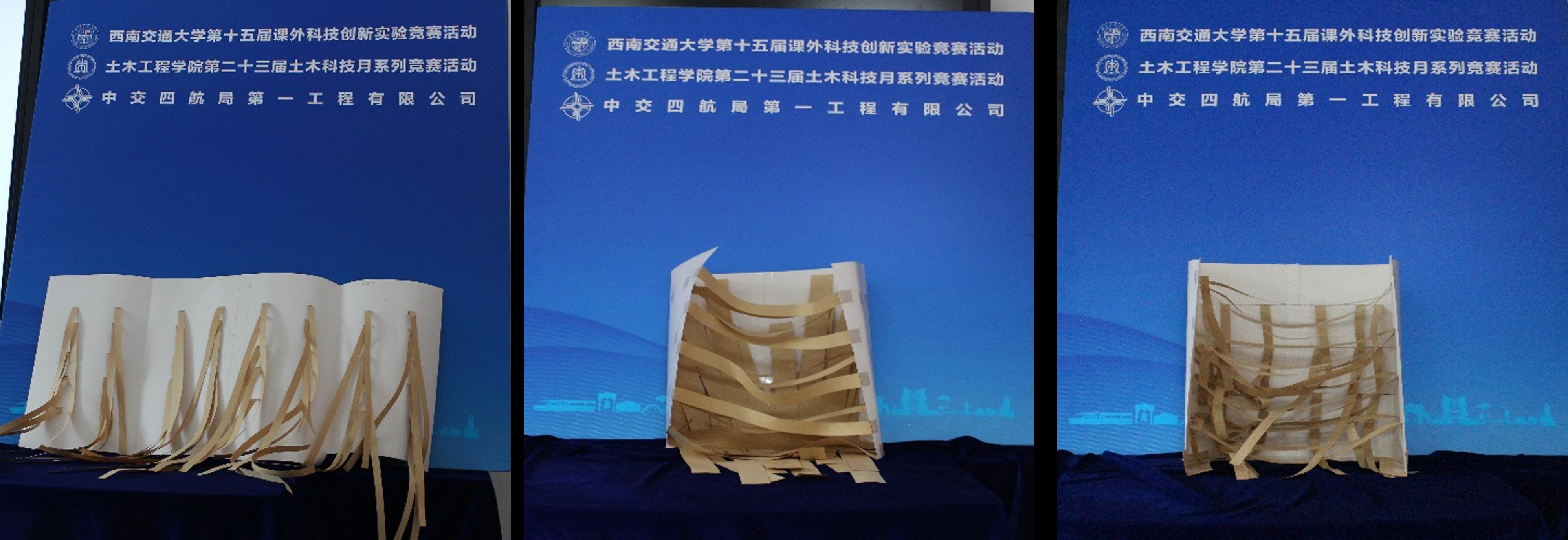 本次竞赛的赛题为“已有支护的基坑开挖”,要求参赛小组制作的支护模型能够承受一定的堆载荷载作用。经过初选,共有4支队伍进入最后的角逐。此次比赛由陈述答辩与实际加载两部分构成。