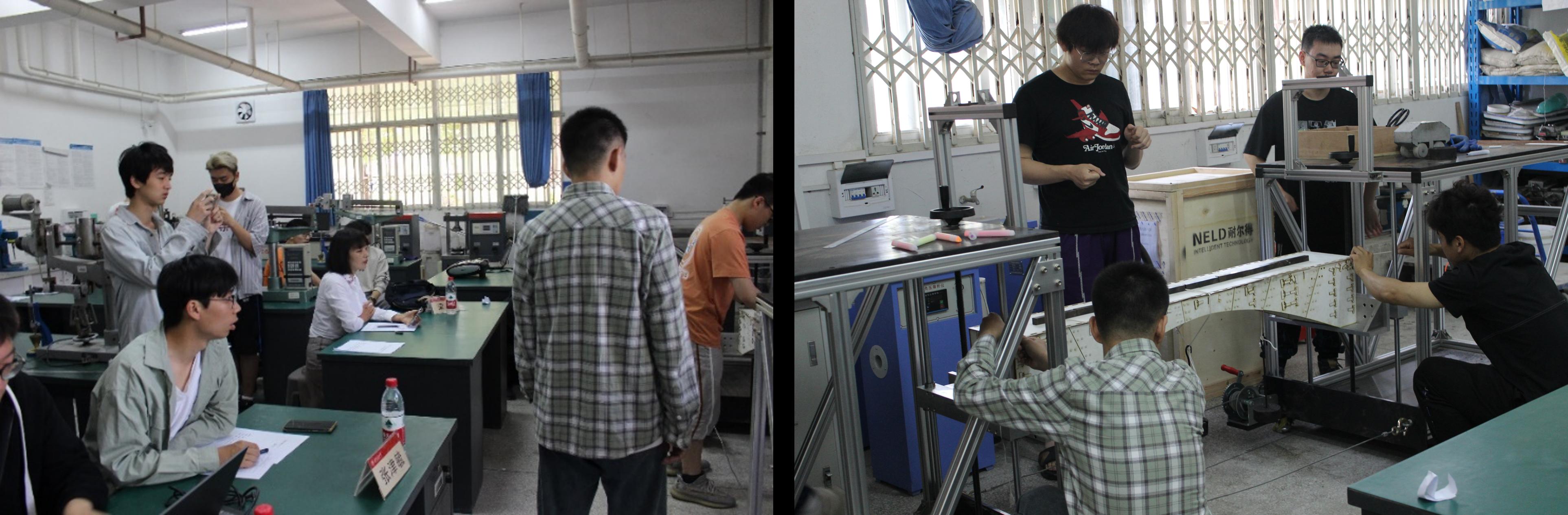本次竞赛主要由模型加载与选手答辩两环节组成。第一项考核预载,预载前首先须校验各参赛作品制作(包括材料、结构尺寸、净空尺寸等)是否满足竞赛规定的限制要求。第二项考核二次加载,二次加载方案分为两个步骤进行。第一步为位移测试荷载工况,第二步为承载能力荷载工况。评委老师们将综合模型承载能力与选手答辩情况,并结合学科经验、专业知识给出最终分数。