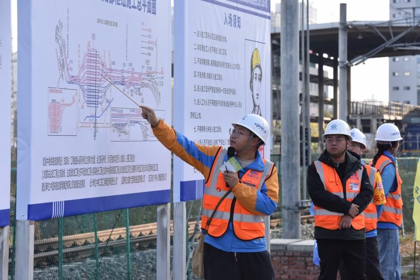上午八点,学院师生一行前往中铁八局成都车站扩能改造项目。抵达项目部后,同学们受到了热烈的欢迎。随后,项目经理吴朝旭向学院师生介绍了成都车站扩能改造项目的一些具体情况,并组织同学们进行现场参观。参观期间,同学们用便利贴记录下所讲专业知识点和心中疑惑。针对同学们提出的问题,随行的工作人员一一进行了解答。