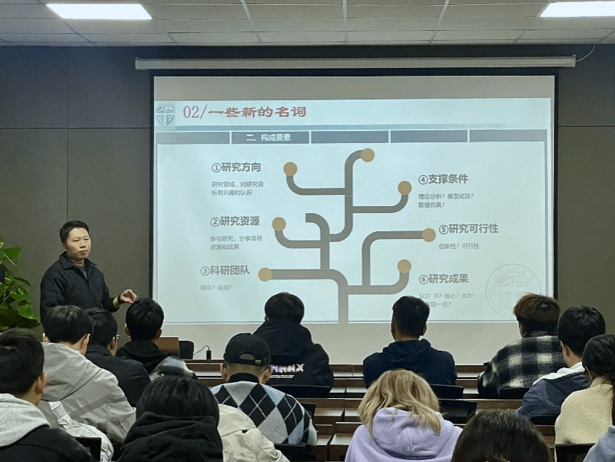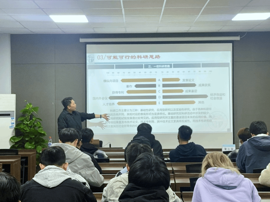 科研是在理论创新的基础上解决实际或潜在的问题,最终形成论文、专利或报告。童心豪师兄讲授了科研的构成要素、科研思路的探索和预计面临的挑战,从这三个方面展示出科研成果产出的不易与艰辛。