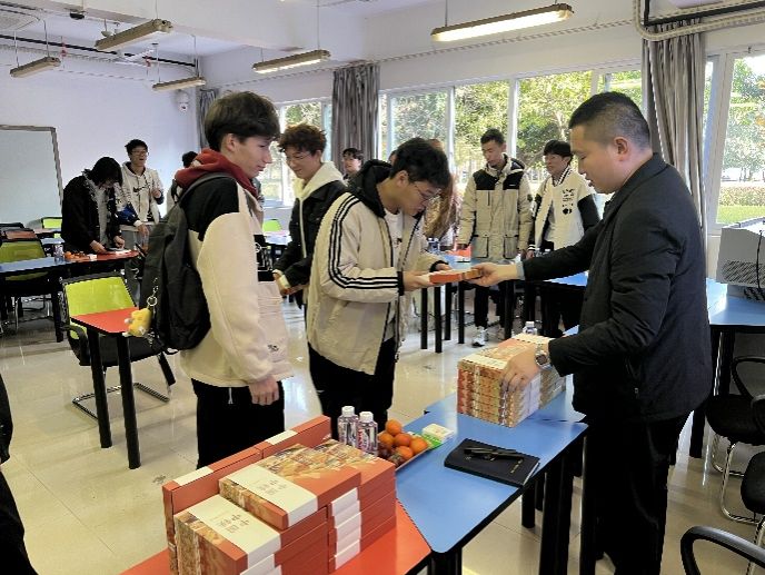 第五环节:中铁八局二公司的吴朝旭导师以及人力资源部张美玲经理为同学们发放了精美的中国中铁文创纪念品,其中包括贺龙元帅题写的“永远的开路先锋”字样封面、精美的书签及笔记本。