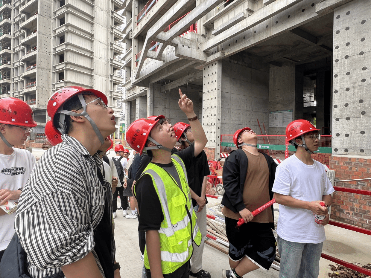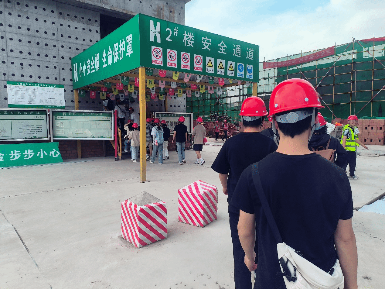 团建中心指导老师贾文怡、红志班及中级班成员一同前往华西四川机司的麓湖生态城C7项目部进行实地参观学习。抵达目的地后,学院师生在工作人员的安排下,佩戴好安全帽,做好防护措施,前往施工现场观摩。