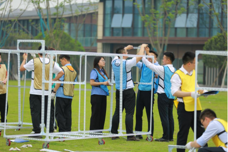 参观结束后,中铁二局电务公司组织了“‘奋斗者、正青春’号列车”DIY团建活动。青年们分工明确,各司其职,共同为完成列车模型而努力。