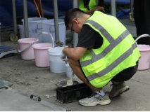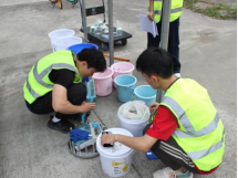 经过一上午的紧张比拼,7支队伍在比赛现场展示了各自的混凝土材料设计方案。选手们专心细致的对混凝土材料进行处理,并通过精确的测定扩展度、J环扩展度及T500展示了自身设计方案的混凝土工作性。