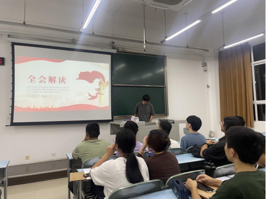 本次学习活动的主体是召开专题会议。会上,党员代表程佳锐带领支部同志们全面回顾了党的二十届三中全会的召开背景、会议内容及重要意义,强调了作为新时代青年学子在全面建设社会主义现代化国家进程中的责任与使命。