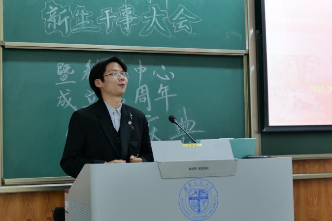 随后,指导老师张津毓回顾了科创中心的发展历程,讲述了他眼中科创中心全体成员们顽强拼搏、砥砺前行的故事。同时,向科创的新成员们发出了诚挚的邀请,鼓励大家在科创的舞台上积极探索、勇于创新,为学院的学科竞赛与创新实践领域贡献自己的力量。