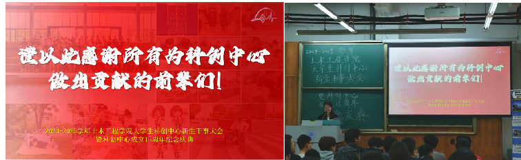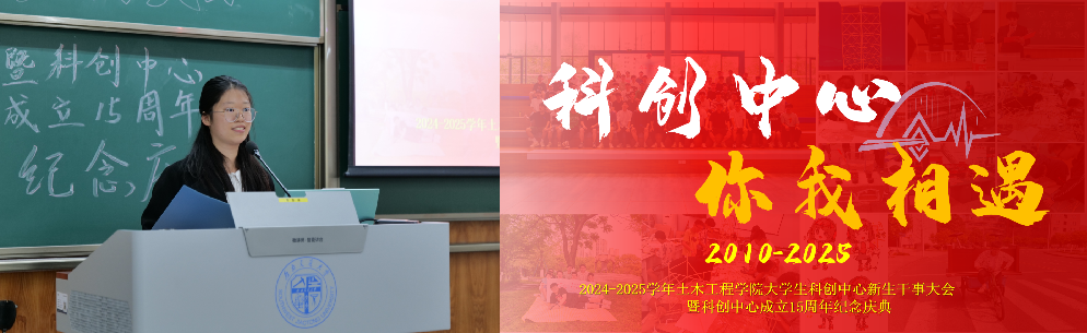 大学生科创中心的架构与职能,以及科创中心的主要发展历程。十五年来,科创中心在土木学科竞赛创新创造的道路上不断前行,展示了土木学子优良的精神风貌,见证了无数智慧闪耀与梦想启航。本次新生干事大会诚邀科创的小伙伴们齐聚一堂,共同见证这一重要时刻。
