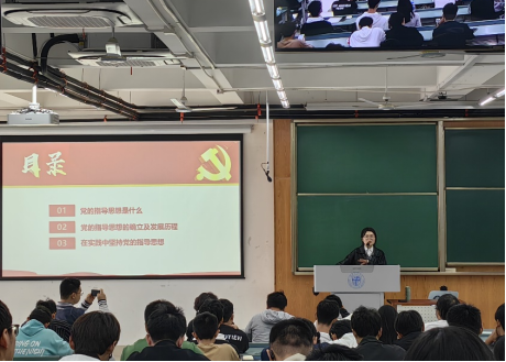 唐丹老师以“一脉相承又与时俱进”为题,生动描绘了中国共产党指导思想的辉煌历程,从《共产党宣言》的发表,到习近平新时代中国特色社会主义思想,每一次理论的飞跃都是中华民族伟大复兴的坚实步伐。“两个确立”是战胜一切艰难险阻、应对一切不确定性的最大确定性、最大底气和最大保证,“两个维护”是必须始终坚守的最高政治原则和根本政治规矩,必须以严明纪律作保障。唐丹老师还详细阐述了《中国共产党纪律处分条例》的修订历程及新修订的重要意义,使大家深刻领会到总则修订的核心要点。最后,她满怀激情地寄语同学们,要从学习中汲取力量,为中华民族的伟大复兴添砖加瓦。