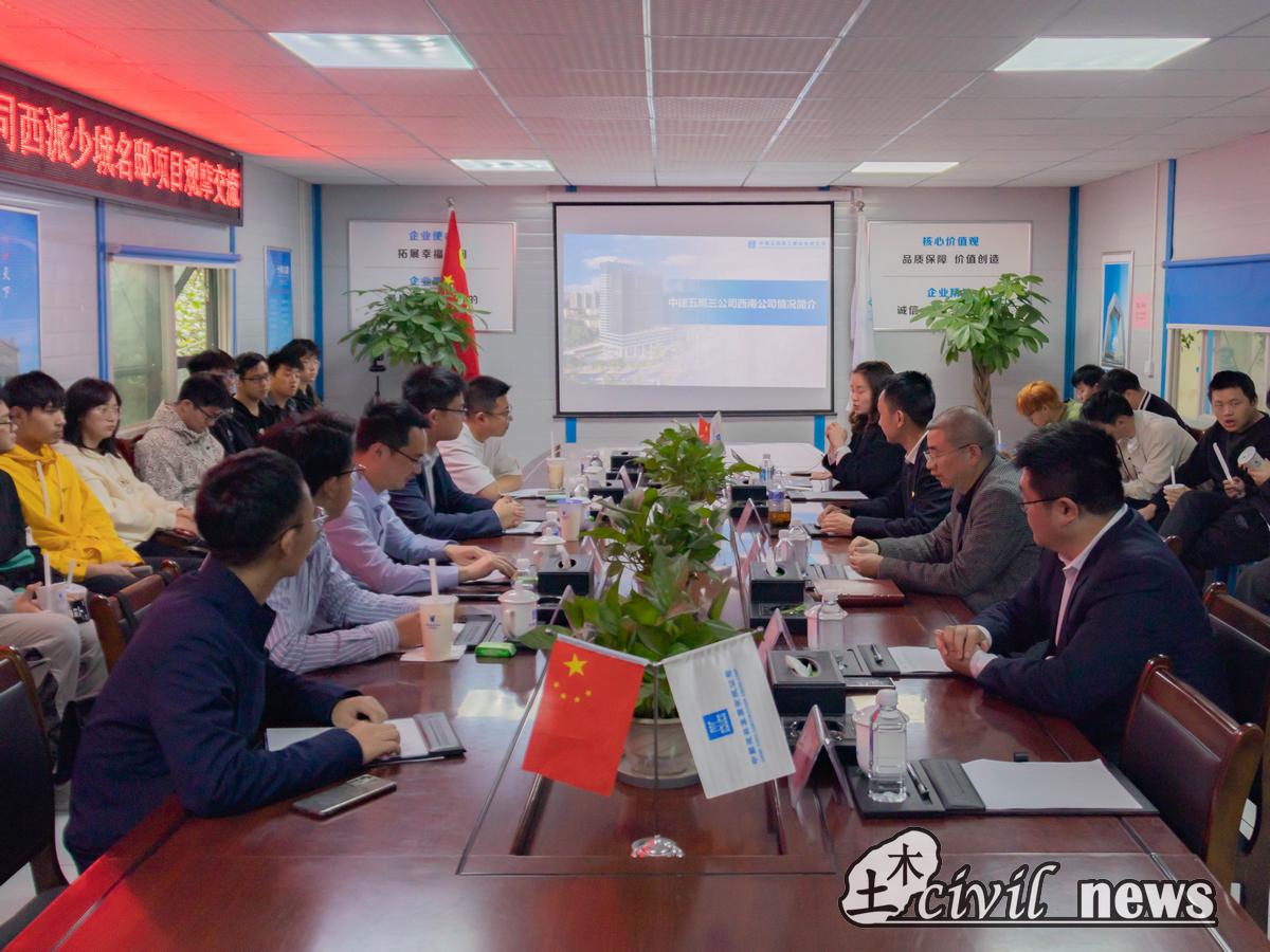 党委副书记周曦,中建五局三公司西南公司党委副书记覃波、工程部经理殷宇、人力资源部经理李明玉,西派少城项目经理朱珉旭,学院辅导员李裕、张进、李江怀、李策老师出席本次交流会。