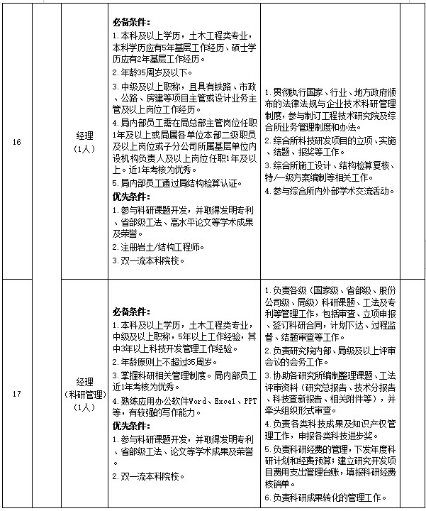 中铁四局集团工程技术研究院主要负责工程实用技术、关键建造技术及工程装备等创新研究,承担局重特大施工技术方案咨询解决及成果孵化相关工作。根据发展需要,现面向局内外公开招聘研究人员,现将有关招聘事项公告如下:
