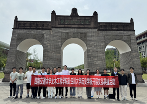 2024级桥梁2班党支部、2024级结构2班党支部、2023级硕士结构班党支部以及隧道博士党支部一行在研究生辅导员郑非老师带领下,前往四川大学历史文化学院,与四川大学历史文化学院2024级硕士1班支部、2023级博士支部共同开展了以“学习中央八项规定精神,筑牢作风建设思想防线”为主题的支部联建共学活动。此次活动旨在通过交流学习,进一步加深对中央八项规定精神的理解,强化党员作风建设,促进两校之间党建工作经验的互学互鉴。
