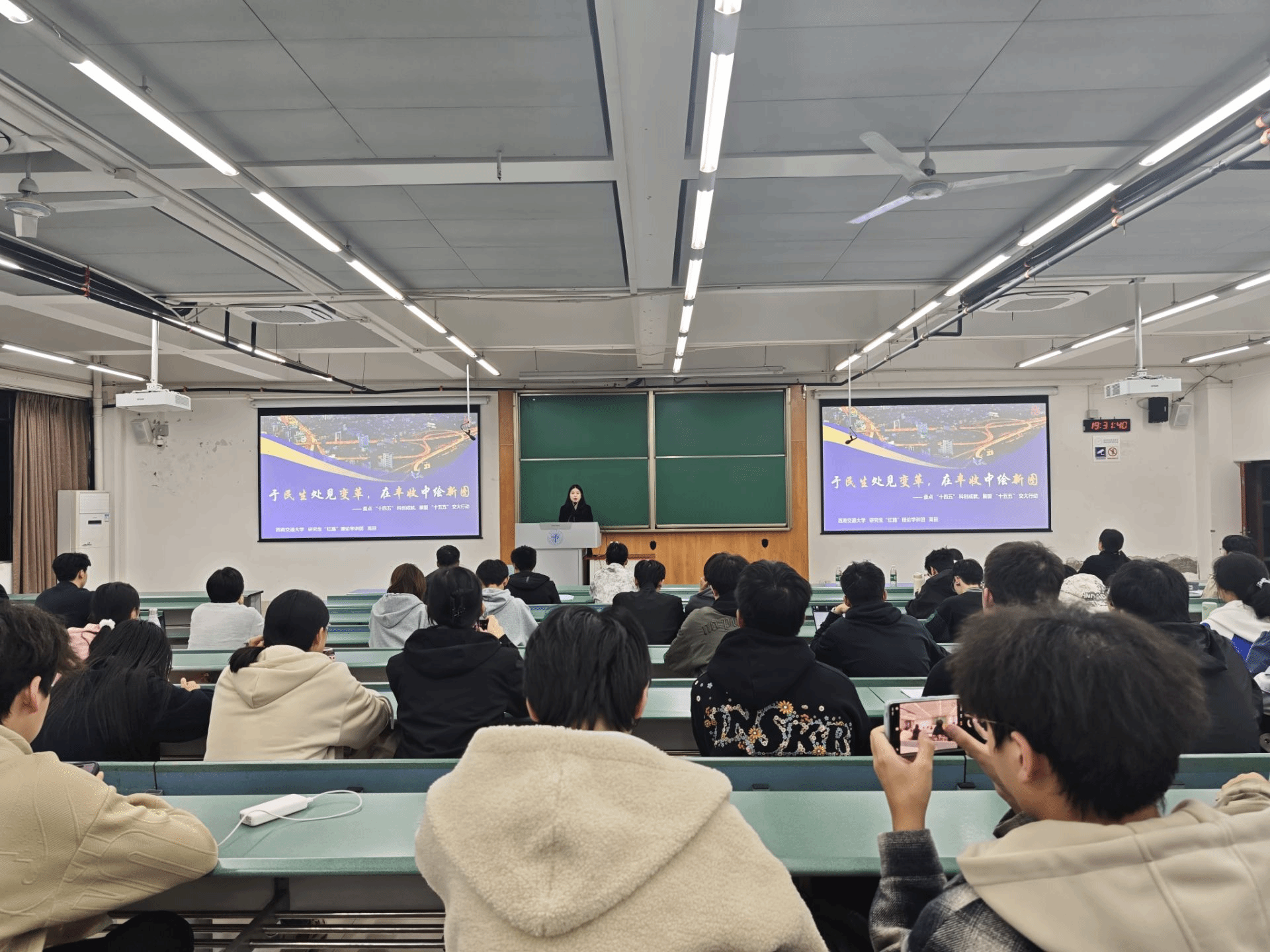 随后,高田讲师围绕“‘十四五’科技赋能,绘就发展新图景”这一核心主题,为同学们展开了深入的讲解。她首先对2025年10月党的二十届四中全会所通过的“十五五”规划进行了细致的解读,阐明了规划中“以科技创新引领新质生产力”这一重要发展方向。同时,她还详细介绍了性吧