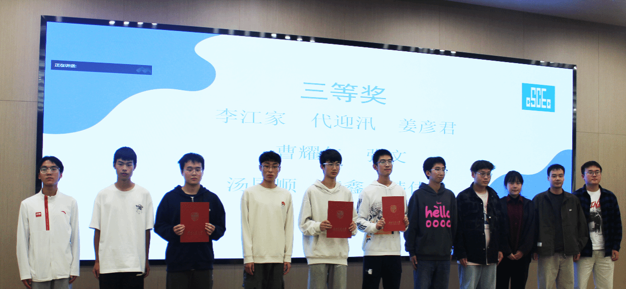 经过激烈的角逐,主持人宣布了“桥见未来”新生纸桥模型设计与制作竞赛的校级获奖名单。张炳宏总工程师、姚军专员、李江怀老师、薛人铭老师、贾璇琦老师、谢宇清老师为获奖队伍颁发荣誉证书。现场气氛热烈,同学们为获奖队伍送去掌声与欢呼。