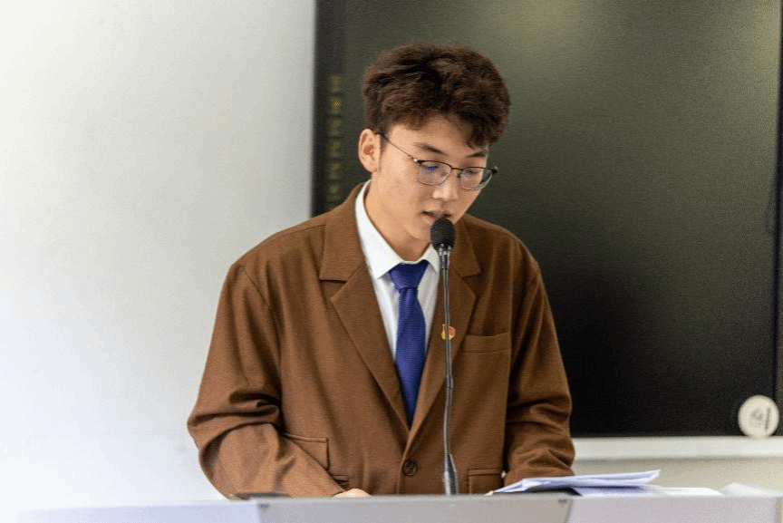 学院青年讲师团成员、辅导员杨颖钊老师总结大家自由讨论中提出的心得体会,带领同学们重温入团誓词,希望同学们始终牢记“请党放心,强国有我”的铮铮誓言。杨老师鼓励同学们积极投身中国式现代化的建设浪潮,自觉增强舍我其谁的责任感、时不我待的紧迫感,以奋斗姿态激扬青春,锐意进取、施展才华、不懈奋斗,勇于投身条件艰苦的基层、国家建设的一线、项目攻关的前沿,练就担当作为的硬脊梁、铁肩膀、真本事。