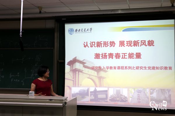 九里校区逸夫楼4323举行了2017级研究生入学教育课程系列之研究生党建知识教育。本次讲座的主讲人是商姚老师。