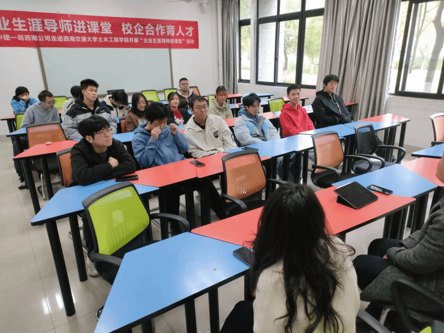 学生在大二阶段明确未来目标与奋斗方向,激发专业学习热情,并深入了解专业就业前景,2024年11月18日,中建一局西南公司的两位企业生涯导师邵刚、张娟玲再度走进性吧