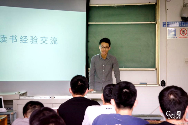 该班班长艾健森首先结合自身阅读经历,提出了关于读书的10条建议。艾健森重点提出读书重要的是好读书,“好读书,培养爱读书的兴趣,并形成阅读的习惯,是通过读书获得知识与技能的基础,也是关键。”他还强调说,读一本书易,读万卷书难,他鼓励大家应该养成好的读书习惯,持之以恒地读下去,终将成为智者。针对班级同学平时科研学习紧、压力大的实际情况,艾健森建议大家要结合好精读与泛读,既要像绣花一样细读文字,也需要有“北国风光,千里冰封,万里雪飘”的俯瞰全貌的感觉。