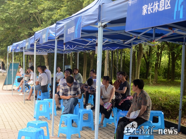 登记的人太多,烈日下,家长们许多来到休息区等候。
