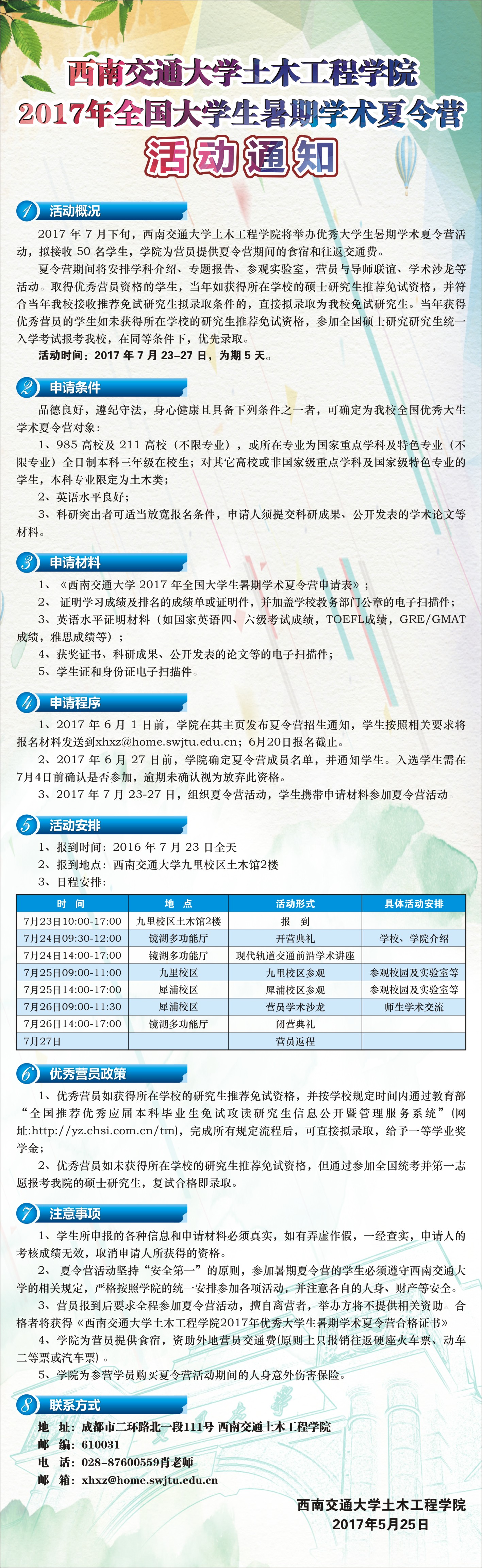性吧 土木学院2017全国大学生暑期学术夏令营活动通知