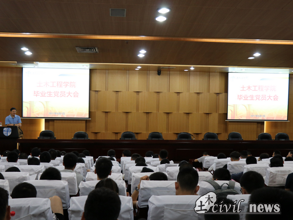 13级毕业生党员大会在图书馆二号报告厅准时开始。学院党支部李锦红书记、13级辅导员刘萍老师出席了本次会议,此外参与此次大会的还有土木学院各党支部大四党员。