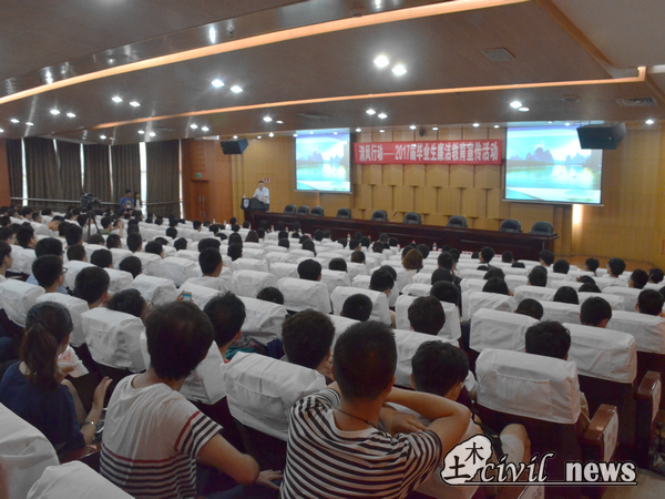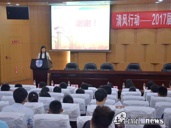 大学生学业与发展指导中心承办的 “清风行动”第三部分——2017届毕业生廉洁专题讲座于图书馆2号报告厅如期召开。此次讲座由纪委葛永明副书记担任主讲人,邀请嘉宾有学工部副部长宋刚、土木学院团委书记刘萍以及各学院老师和同学们。