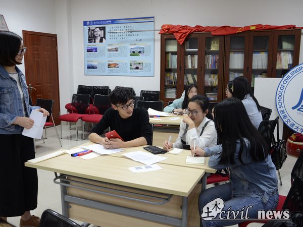6点整辅导课堂正式开始,10位同学共被分为3个小组,组员之间互相作自我介绍。而后,全部同学制作了包含有未来拟从事职业信息的名牌。黄雪娇老师依次浏览了同学们的名牌之后,总结道:“对于未来职业,我们可以拓宽思路,未必要局限于土木行业,这也正是我们今天进行女性职业世界探索的目的。”