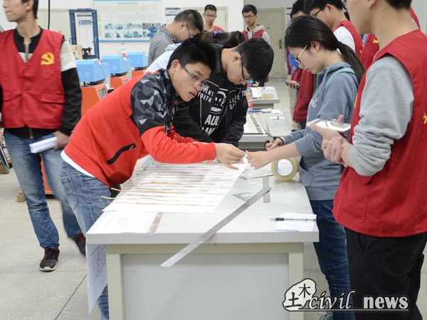 来到阳光明媚的5月,土木科技月继续如火如荼地进行。5月7日,是铁道组决赛的日子,33个不同的小组将在土木实验中内同台竞技,角逐属于自己的殊荣。早上8点整,决赛正式开始。