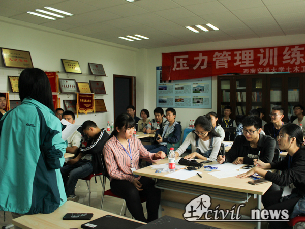 大学生学业与发展指导中心承办的“压力管理训练营”在X4229正式开营.本次训练营旨在给土木本科生提供一个降压缓压的平台,以疏导他们在平时学习工作中形成的压迫感。土木学院分团委书记、13级辅导员刘萍担任本次训练营的指导老师。
