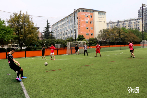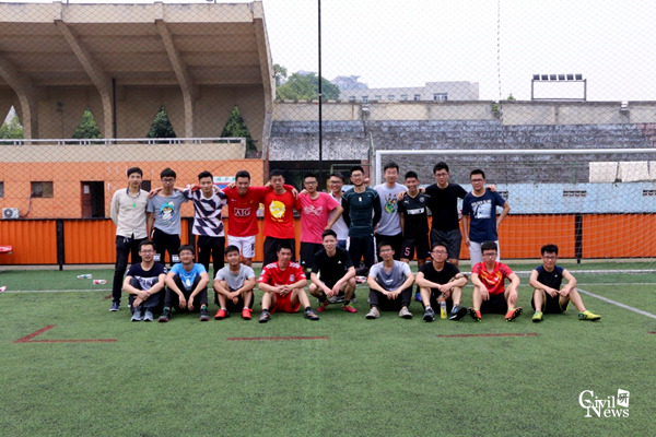 另外一场比赛,上半场岩土班2:1领先博士班,下半场博士班凭借点球扳平比分,气势大增的博士班再入一球,最终以3:2的比分赢下比赛。