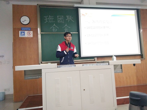 2017年3月26日,第十一党支部在X4155举行第一次班团联合会,14、15、16三个年级11班的同学参加了本次会议。