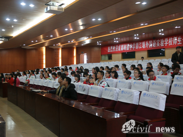 副院长富海鹰、党委副书记李锦红和桥梁系副教授何畏等。树德中学来访教师有李华明、杨明等。师生们伴随着犀安路999号的音乐声进入了报告厅。
