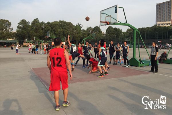 研究生会举办的第一届研究生院际篮球联赛第二场的比赛中展开了激烈的较量。身着黑色球服的就是我们性吧