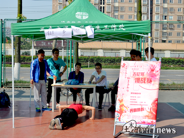 校园体育吉尼斯大赛的现场有滑轮单脚站立、计时颠球、十秒抢记、一分钟俯卧撑、一分钟单摇跳绳、一分钟罚篮、五分钟呼啦圈等比拼。每一个项目都极具趣味性,激发了同学们对体育运动的兴趣,让欢笑声充斥着整个篮球场。记录被不断刷新,一分钟104个俯卧撑、一分钟254次跳绳、一分半7个三分球、五分钟896个呼啦圈等都是交大人拼搏精神和昂扬斗志的体现。同时进行的棋牌休闲赛不同于其他环节的疯狂,是棋手们智力与心理的双重较量。