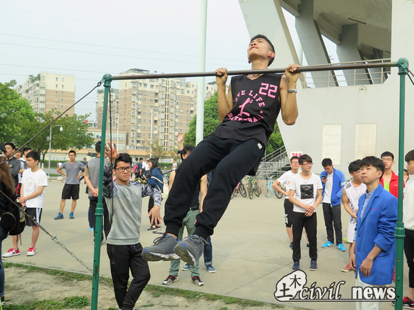 十时许,在分赛场举行了男子引体向上的比赛。引体向上是臂力与重力的直接对抗,是最纯粹的力量对决。来自各个学院的健儿们都拼尽全力,为多做一个尽力坚持着,来自土木学院的王兴平取得了第二名的佳绩。