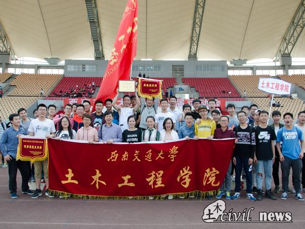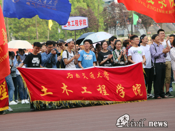 首先,由总裁判长宣布运动会的比赛成绩,土木学院以99分位列甲组第五名。随后大会宣布了“体育嘉年华吉尼斯挑战赛”破纪录者名单,土木学院梁栋程同学打破了“自行车慢骑”项目的记录。在接下来的环节中,土木学院接连获得“道德风尚奖”及“最佳组织奖”两项大奖,引得全体土木师生阵阵欢呼。