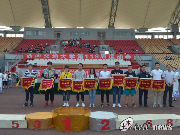 在大会尾声,由陈书记为甲组前六名颁奖,土木学院的代表走上领奖台领奖。阳光下闪闪发光的汗水和沉甸甸的奖牌,在这一刻让同学们觉得倍感幸福。