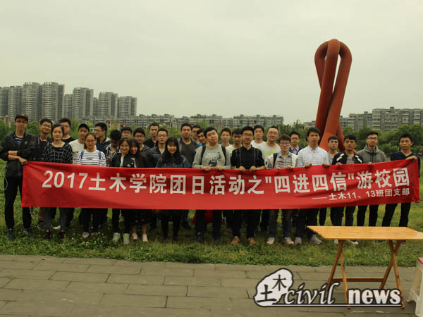 2017年4月16日下午3:00,2015级土木11、13班团支部“四进四信”主题团日活动在交大浙园顺利举行。同学们按时地到达了浙园,活动由两位团支书主持,整个活动过程中,两班同学们相互合作,相互竞争,积极参与到了活动中去,活动现场十分热烈。